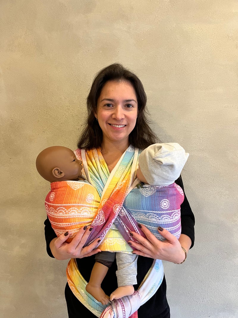 - Ook geef ik informatiebijeenkomsten over dragen. Hierbij geef ik een praatje over de voordelen van dragen, wat ergonomisch dragen is, welke draagsystemen er zijn en wat de voor- en nadelen hiervan kunnen zijn.